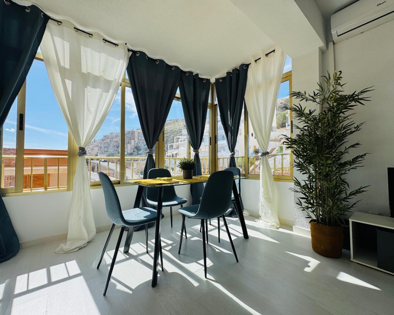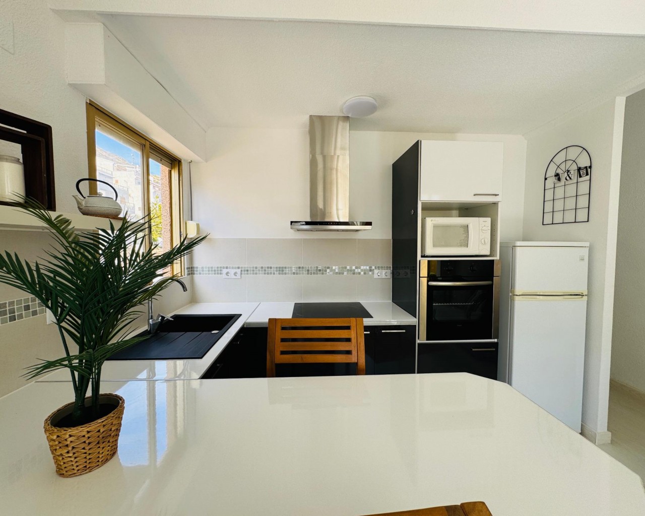 Aqui os mostramos un precioso apartamento en la zona de las Calas de Santa Pola, totalmente reformado, perfecto para vivir todo el año o para vacaciones.. La vivienda muy luminosa con grandes ventanas hacen que sea muy acogedora y bonita.. Compuesta por un salón comedor con terraza acristalada y una gran cocina americana. Dos dormitorios y un baño.. La urbanización tiene zona de aparcamiento y además una terraza comunitarias con unas vistas impresionantes. . A la playa andando son 2 min. . No te lo puedes perder. Llámanos y visitaremos sin compromiso.. . En el precio no están incluidos los gastos de notaría ni impuestos..