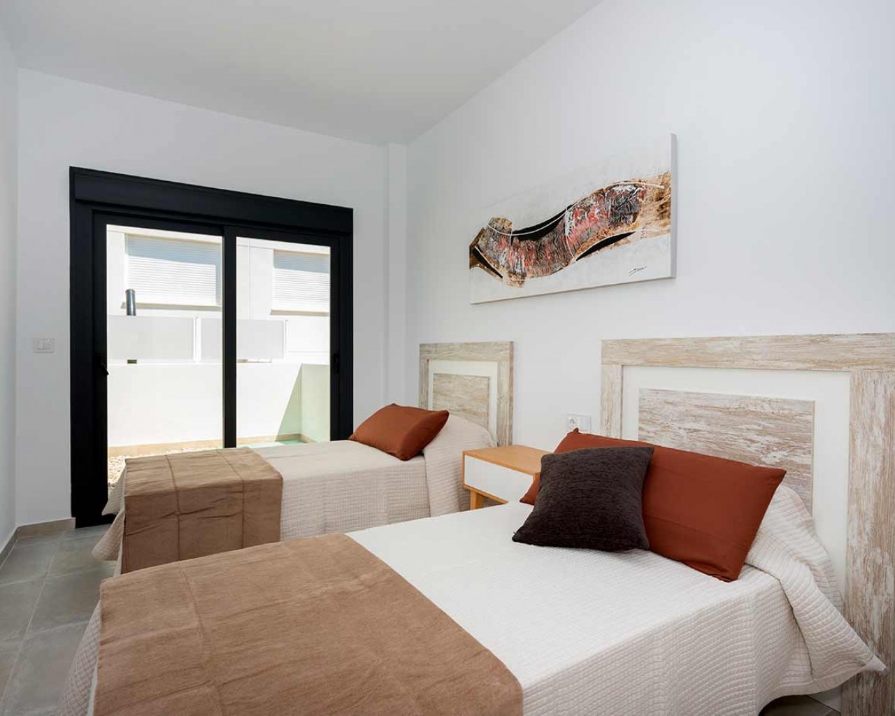 Villas de obra nueva, todas en una sola planta en la parte nueva de Daya Nueva. 3 dormitorios, 2 baños y piscina privada de 18m2. Salón / comedor con doble techo alto, cocina abierta, luz natural y posibilidad de solarium. El dormitorio principal tiene baño en suite y vestidor.