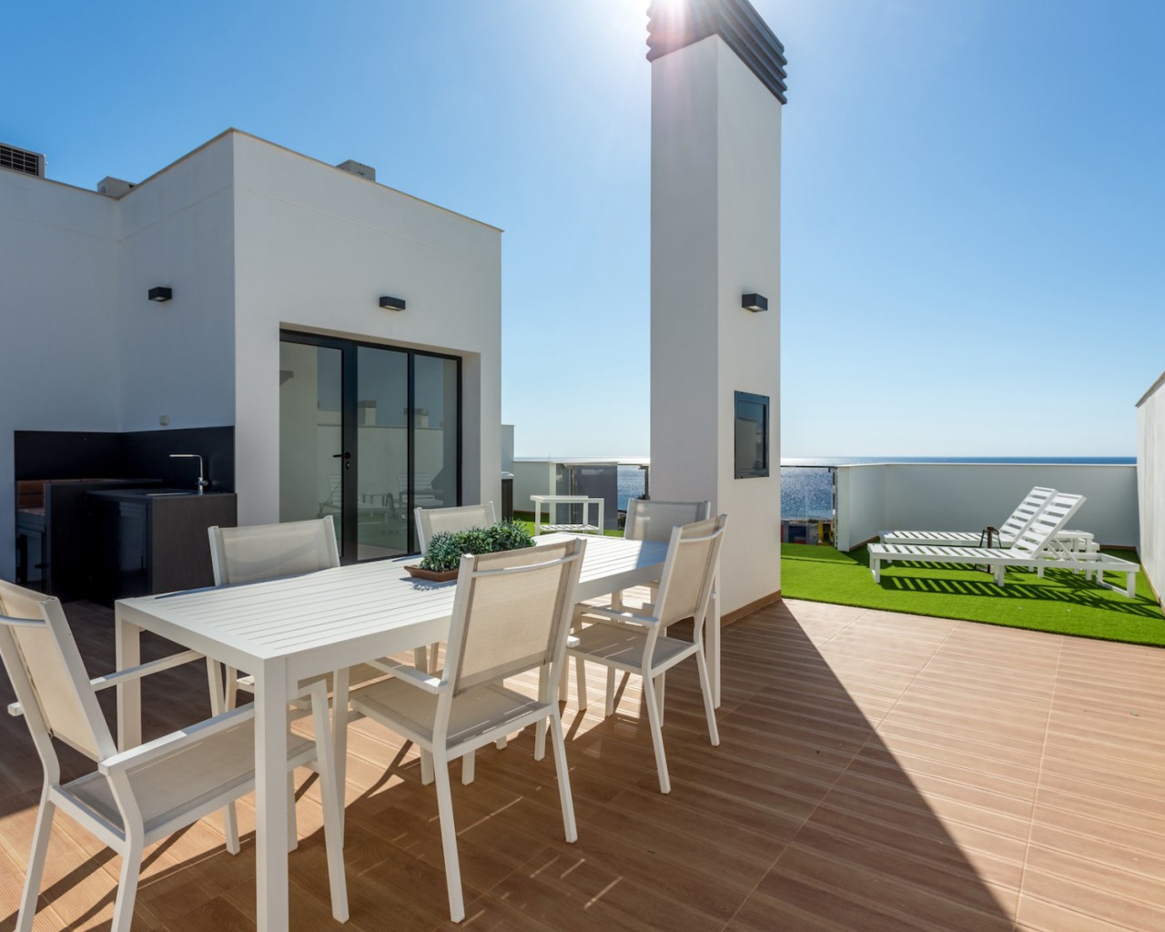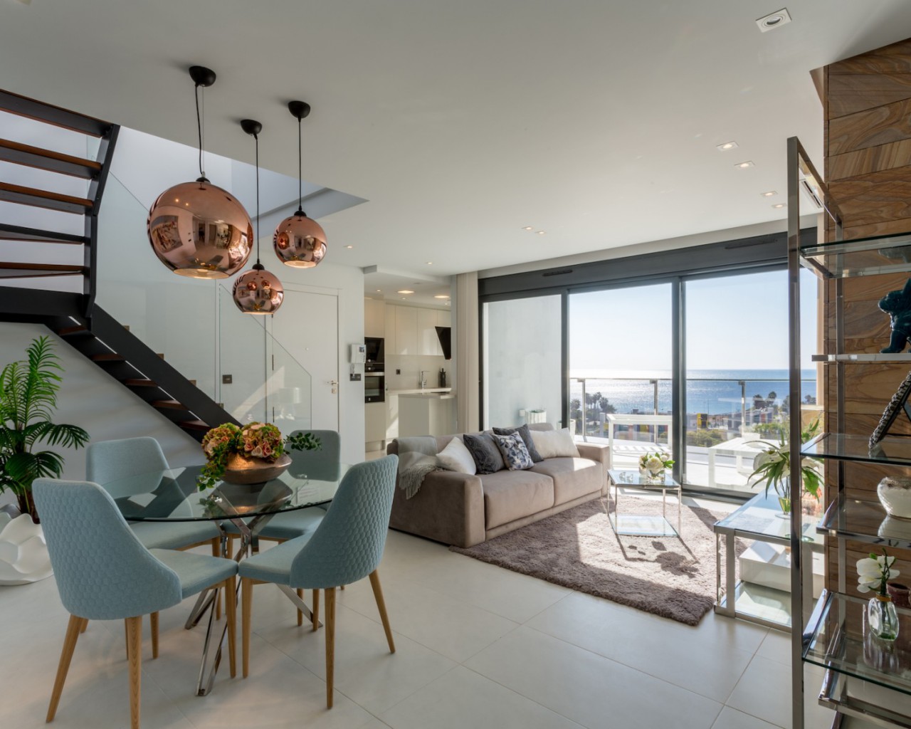 Estos lujosos áticos espaciosos se encuentran en primera línea de playa en Mil Palmeras, Costa Blanca.