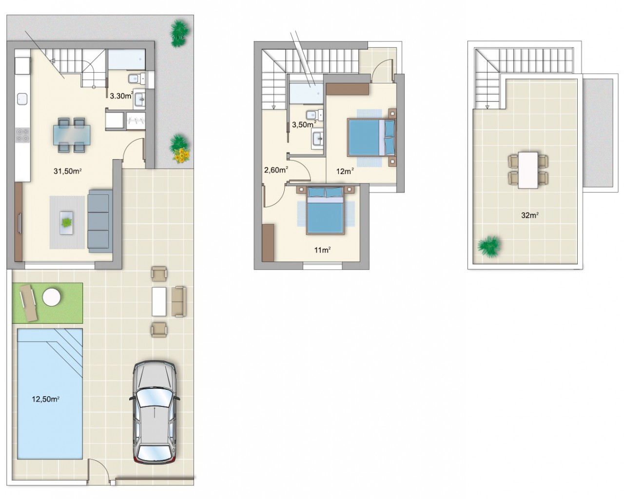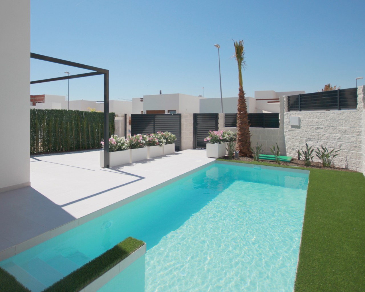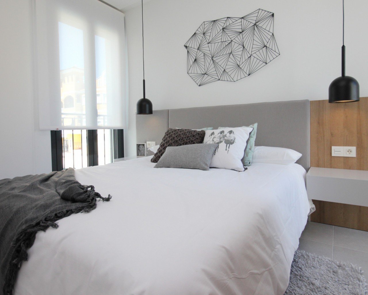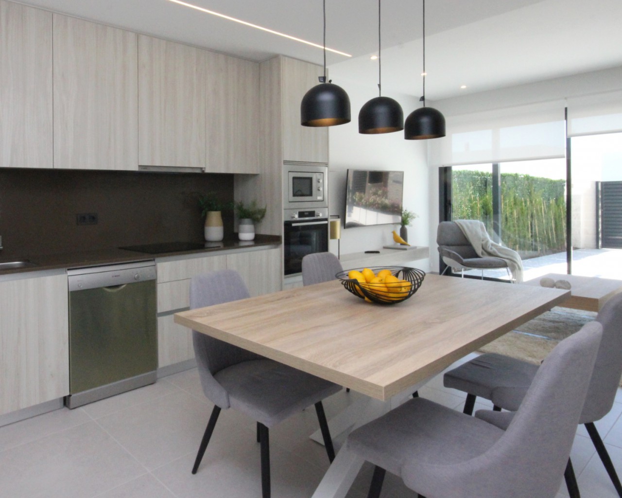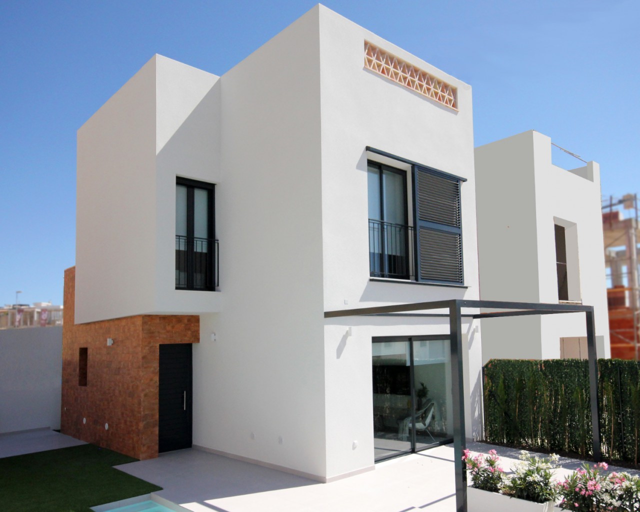 Bijoux es una promoción exclusiva de villas independientes, ubicada en la localidad sureña de Benijófar en la Costa Blanca. Las propiedades de dos plantas constan de dos dormitorios dobles (ambos con armarios empotrados), dos baños, una cocina moderna totalmente equipada integrada y un salón / comedor de planta abierta, que conduce a una terraza cubierta y jardín privado, con espacio para crear una piscina privada. Pileta instalada (costo adicional). Se accede al espacioso solarium de la azotea desde el dormitorio principal y ofrece impresionantes vistas sobre el campo y las montañas.