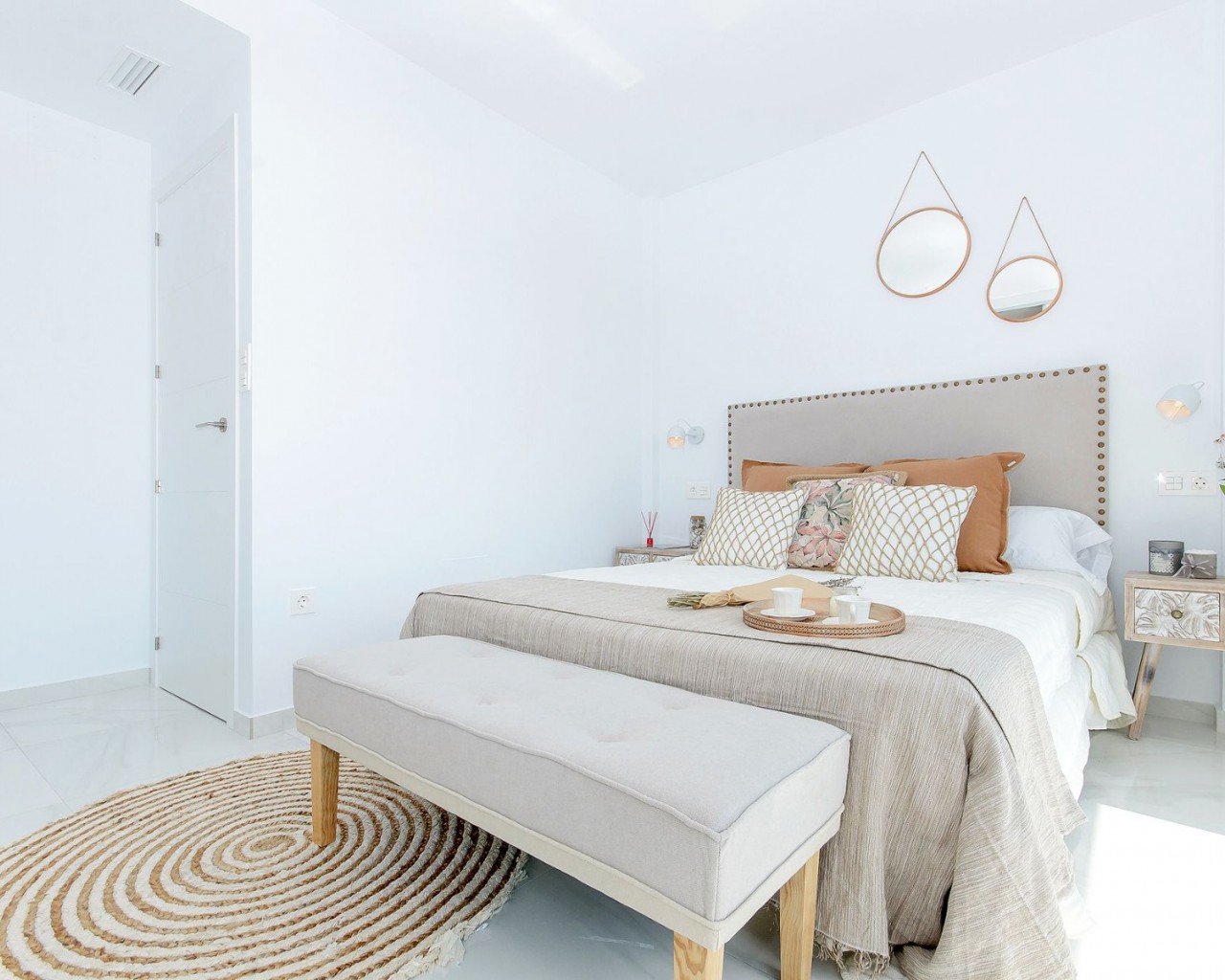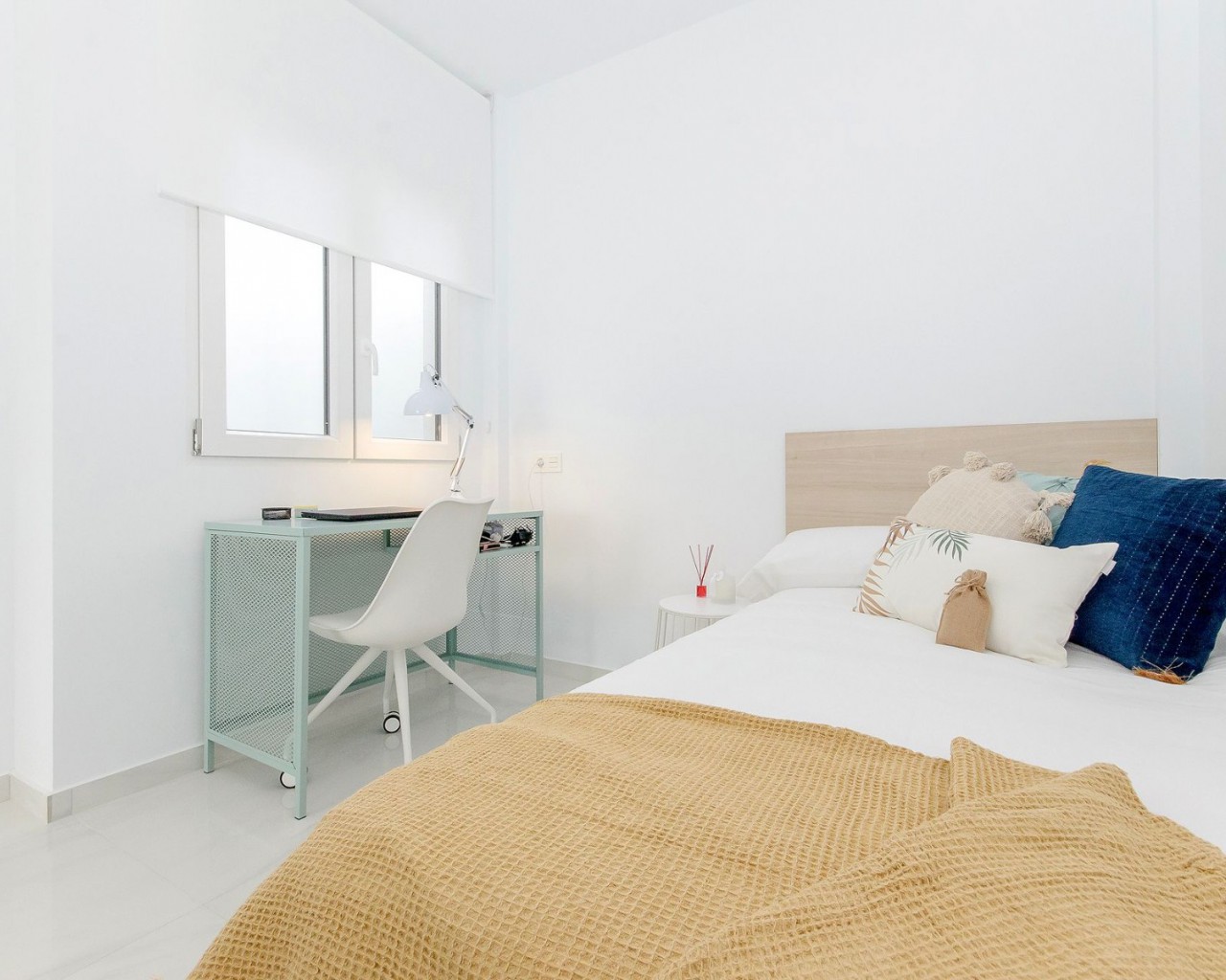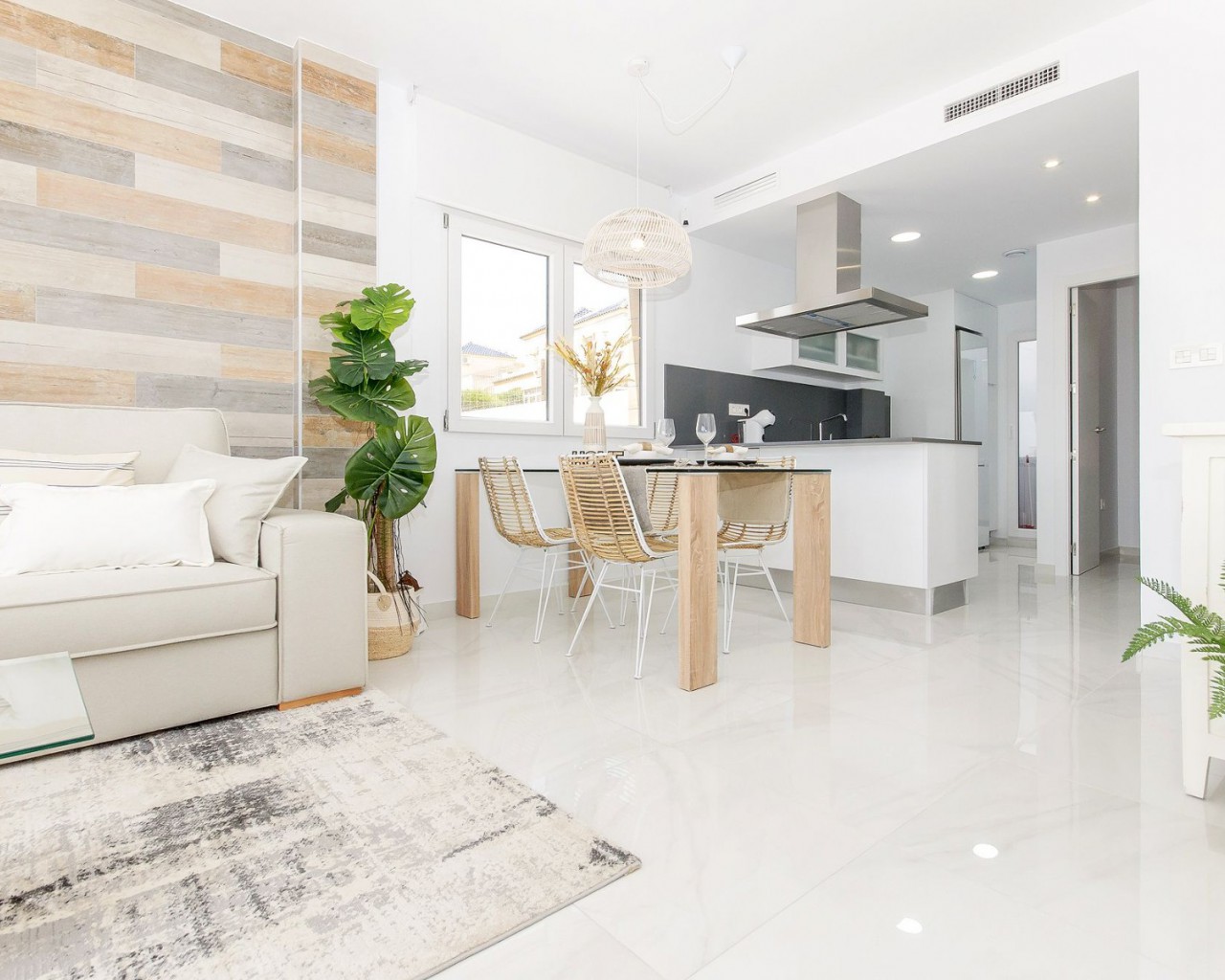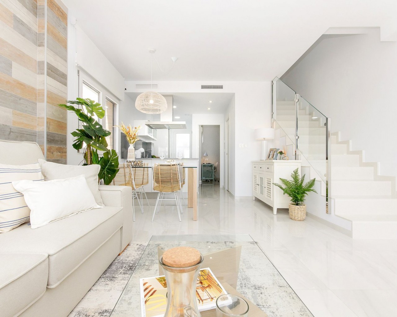 El complejo consta de adosados de dos plantas con 3 dormitorios y 3 baños más solarium privado. El piso principal incluye una cocina con área de descanso, comedor y sala de estar, que se abre a una terraza parcialmente cubierta. También hay un dormitorio y un baño en esta planta. Los otros 2 dormitorios están en el primer piso, cada uno con baño en suite y terraza privada. Las escaleras exteriores conducen al espacioso solárium, donde se puede disfrutar de la fantástica vista panorámica del lago salado y el mar.