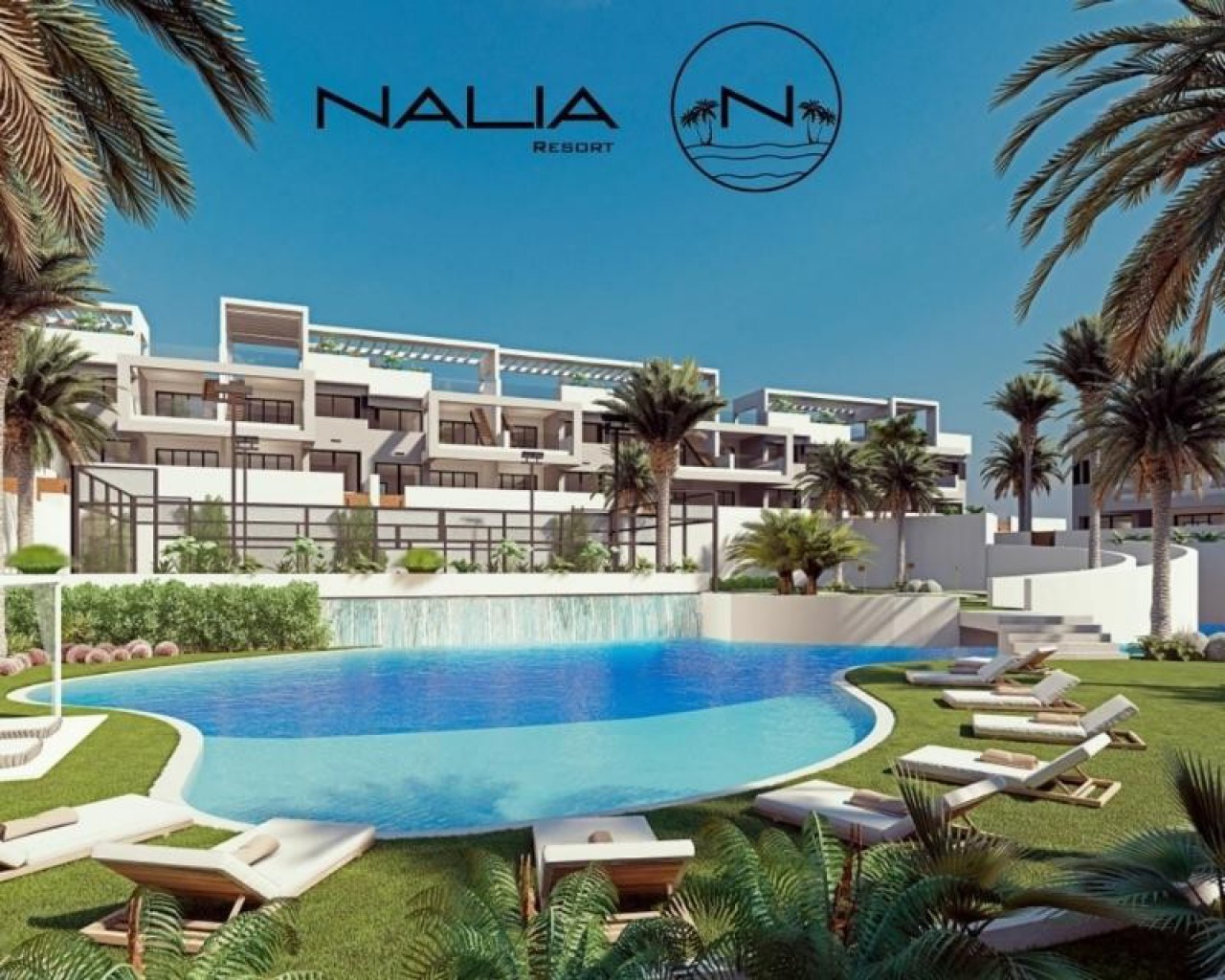 Spain casa 4 you presenta su nuevo complejo residencial ÚNICO en la zona de Torrevieja. Compuesto por 136 viviendas de lujo construidas con materiales de primera calidad. Nalia Resort ofrece zonas comunes idílicamente ajardinadas con 3 piscinas, jacuzzis, gimnasio, pista de pádel, minigolf, zona infantil, punto de recarga de vehículos eléctricos… ¡y mucho más! Sus instalaciones y zonas verdes de primer nivel te permitirán disfrutar de los 320 días de sol que ofrece la Costa Blanca con tu familia y amigos.