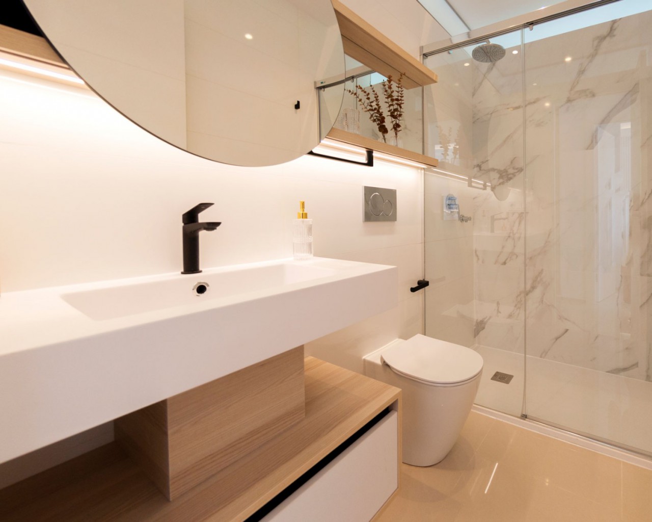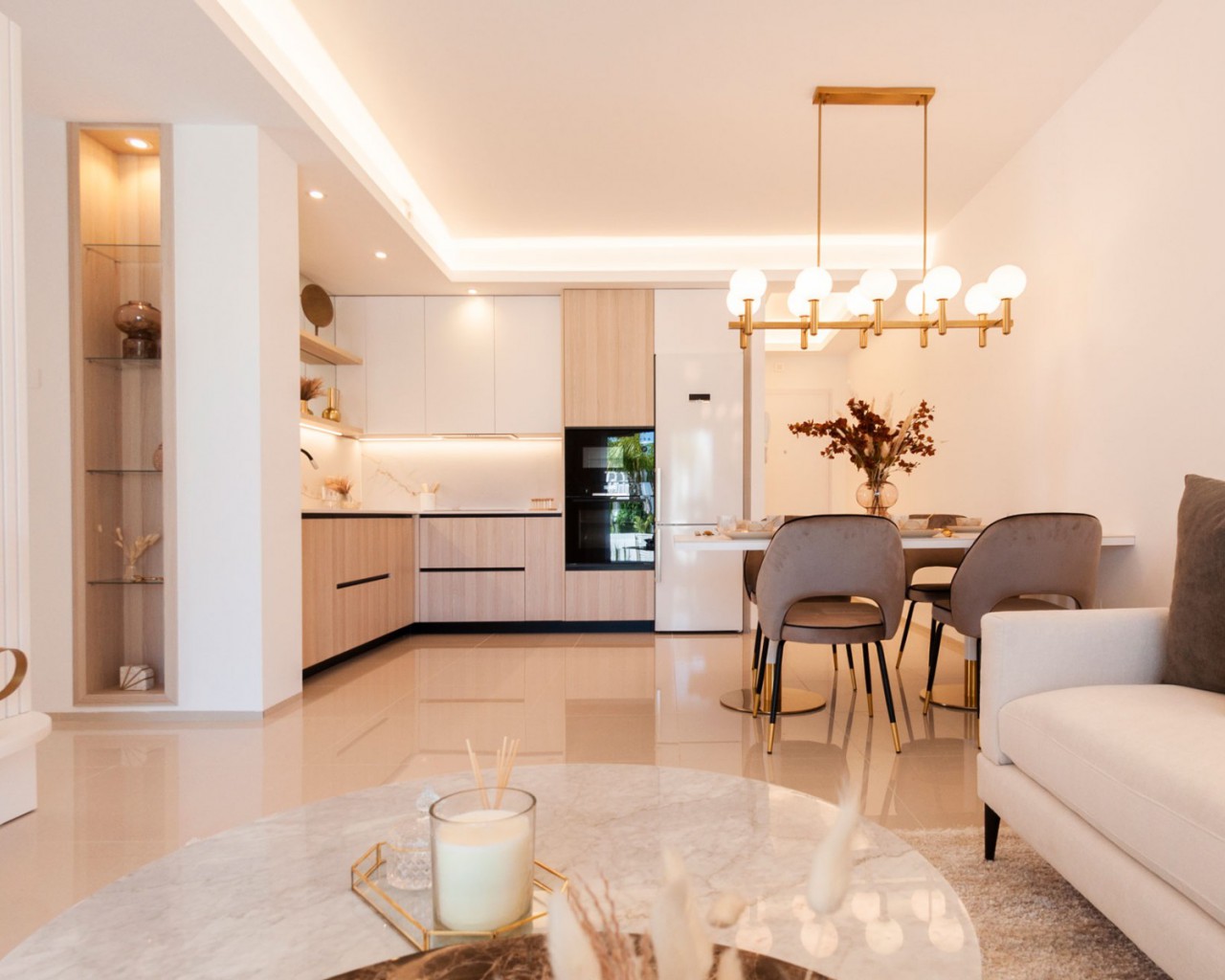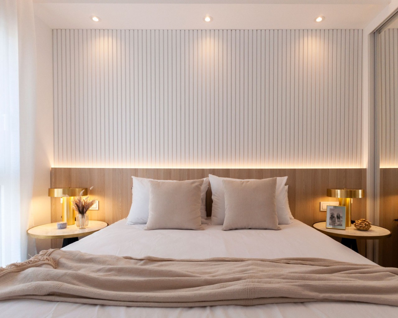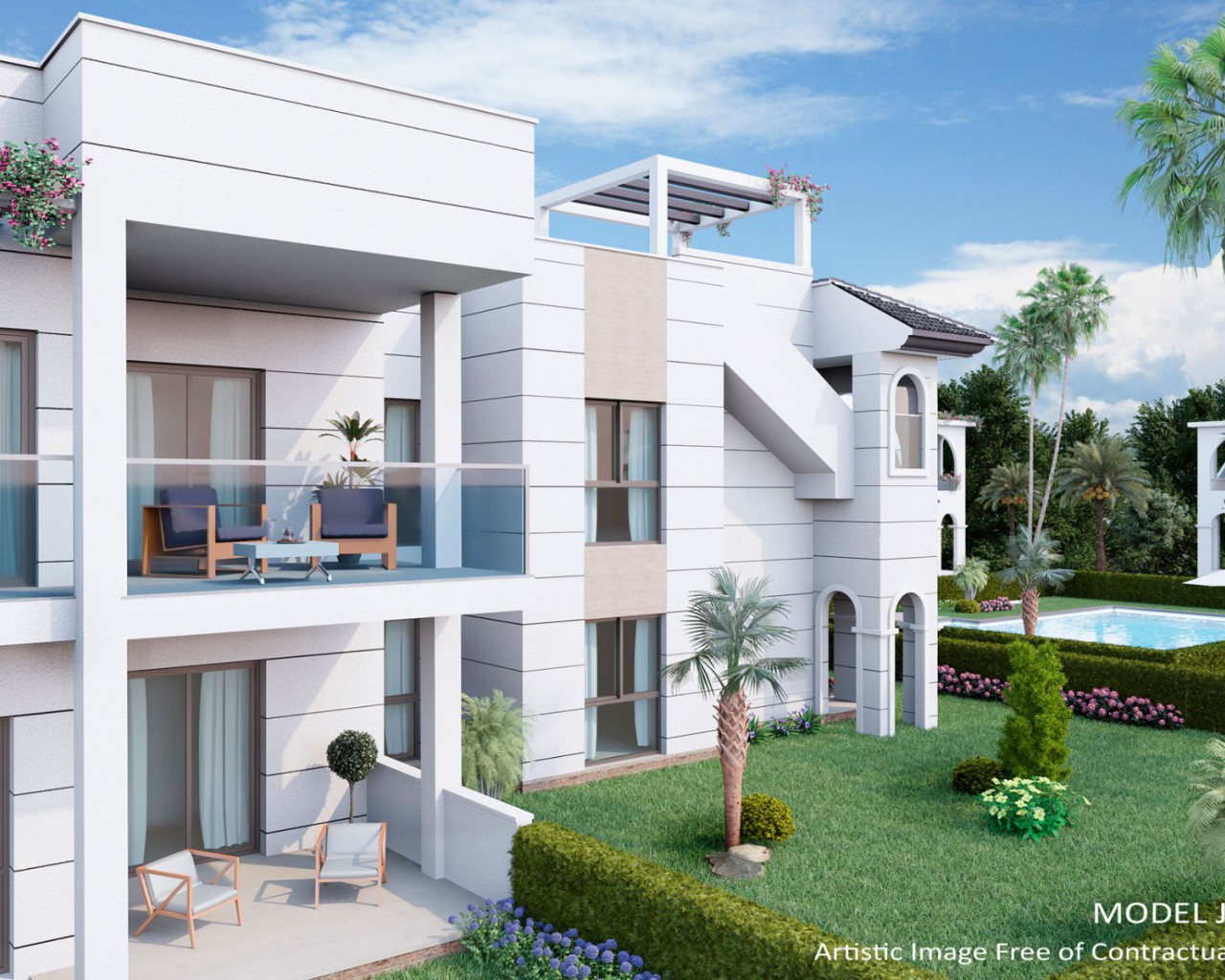 El complejo ofrece apartamentos modernos y luminosos de 2 o 3 dormitorios en dos modelos diferentes: apartamentos en planta baja con amplios jardines; o áticos con terraza privada en la azotea.