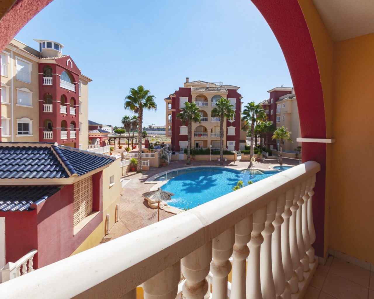 En las inmediaciones encontrará restaurantes, tiendas, un polideportivo y otras instalaciones. La ciudad de Los Alcázares está a unos 10 minutos a pie. El nombre Los Alcázares se deriva de la palabra árabe 'Al Kazar', que significa 'palacio' o 'casa de los nobles'. Estos fueron edificios construidos por los moros para sus vacaciones y descanso. Además, fueron los moros quienes descubrieron las excelentes propiedades de las aguas del Mar Menor, de las que disfrutaban en las antiguas termas romanas. Con la reconquista cristiana, Los Alcázares se convirtió en un importante puerto pesquero y comercial, dada su excelente ubicación estratégica.