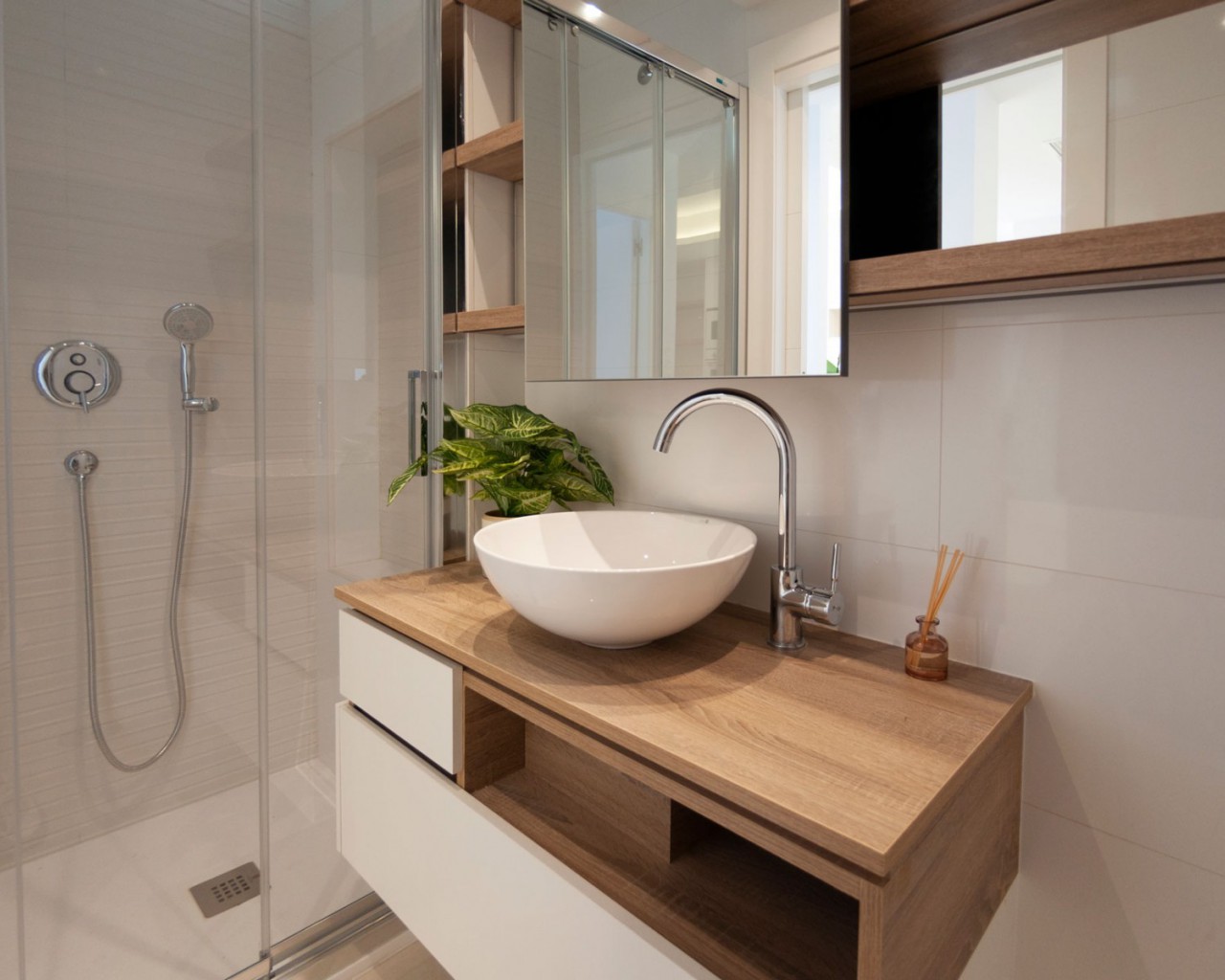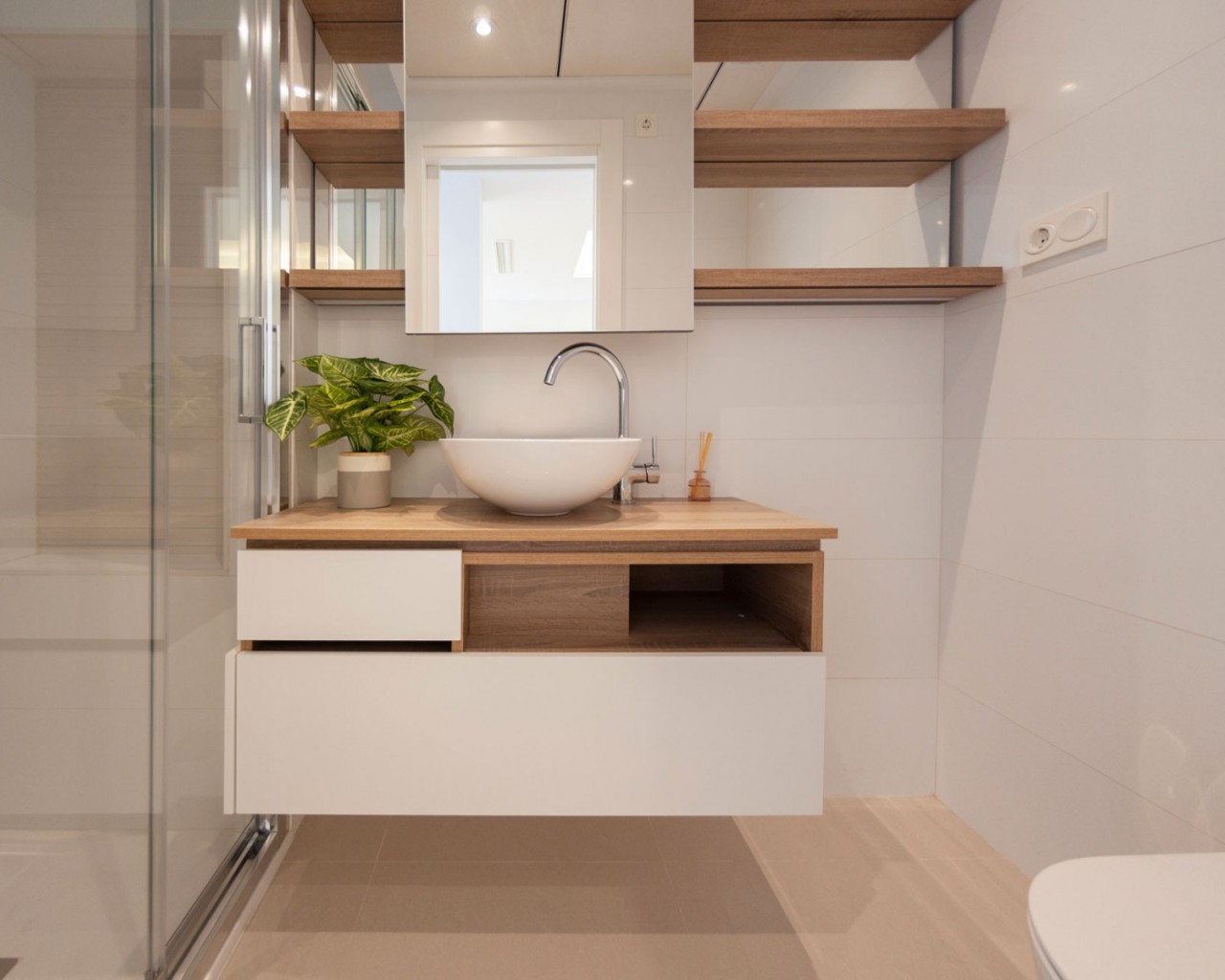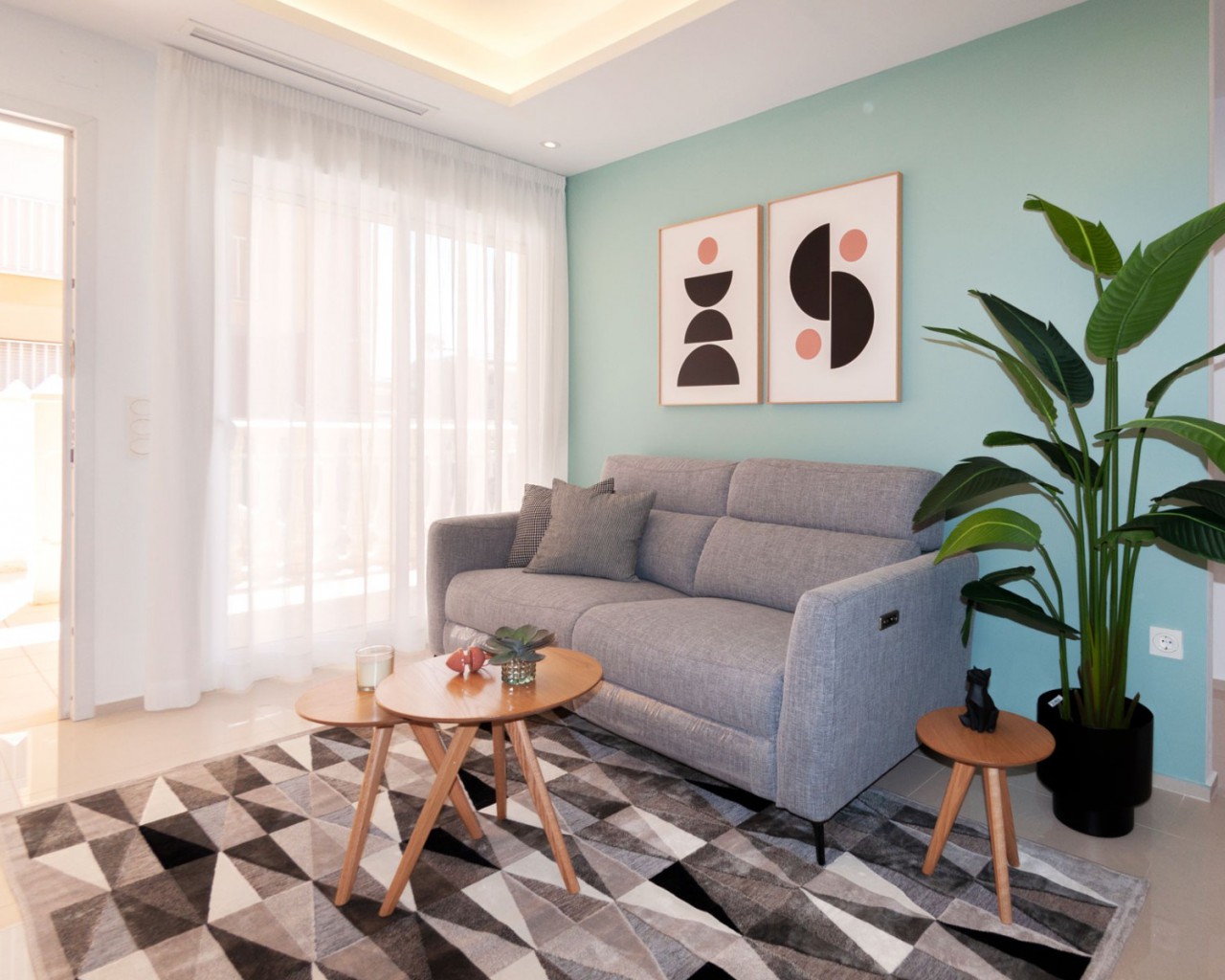 Los apartamentos tienen 2 dormitorios, dependiendo del tipo 1 o 2 baños, una moderna sala de estar, cocina abierta y terraza. Los apartamentos más altos disponen de solárium privado con bonitas vistas. Todos los apartamentos disponen de armarios empotrados en los dormitorios y preparación para la climatización. Las piscinas comunitarias se encuentran en los hermosos jardines. Por supuesto, usted tiene su propia plaza de aparcamiento subterráneo.
