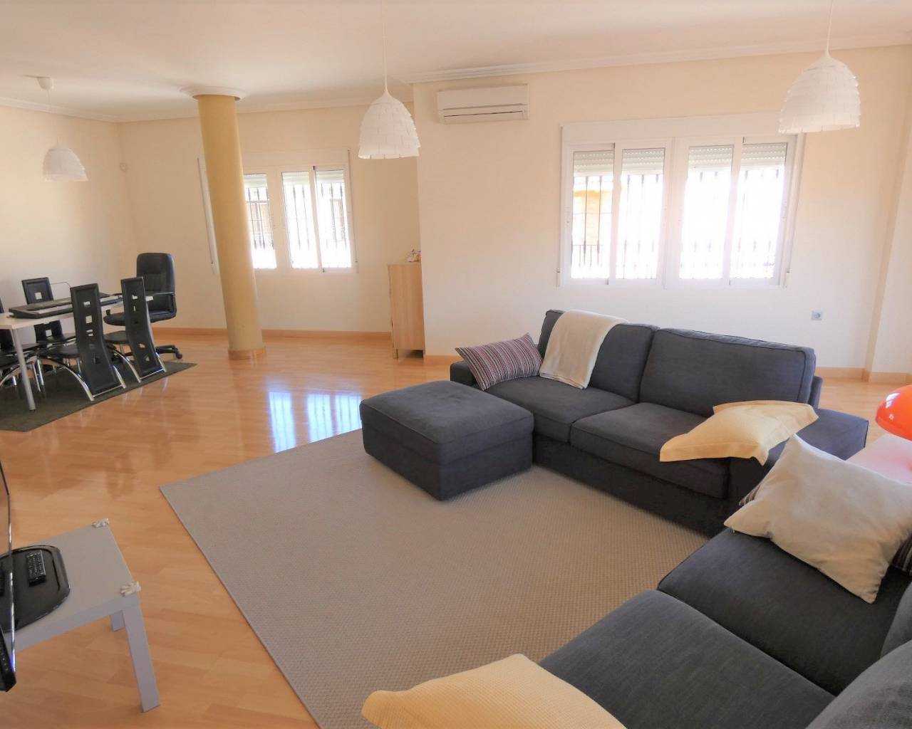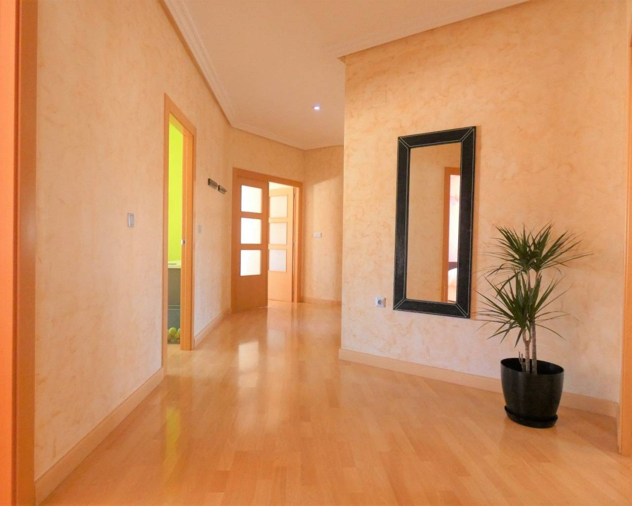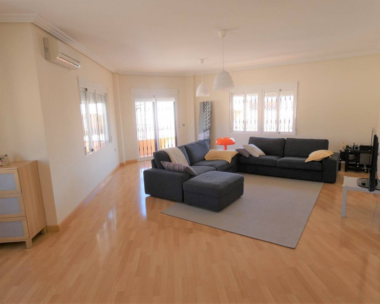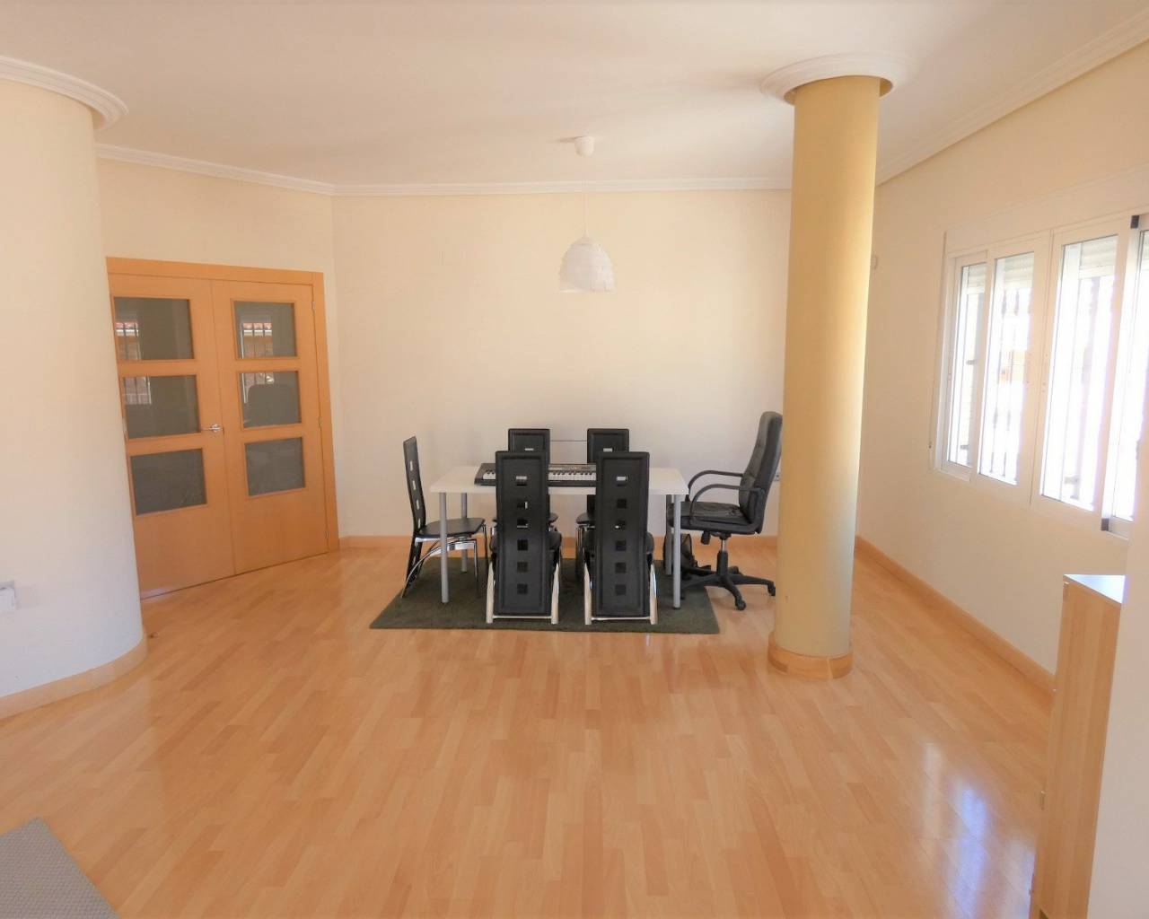 Una propiedad española única en su tipo ubicada en el corazón de la hermosa ciudad de Los Montesinos. Tiene todas las comodidades necesarias a 5 minutos a pie, incluido el centro médico, el centro deportivo, bares, restaurantes, escuelas y mucho más. Esta enorme casa fue construida desde cero en 2005 destinada a ser una casa familiar perfecta. La vivienda es un enorme 187m2 repartidos en el piso que se ha construido con los más altos estándares con los mejores materiales y muebles. Cuando entras por la puerta de entrada te saludan con una escalera que te lleva al primer piso donde se encuentra el alojamiento. En esta planta hay 3 habitaciones dobles más 2 baños (uno de ellos en suite con el principal), una gran sala de estar con una gran cantidad de luz natural y un amplio balcón. Fuera del pasillo hay una cocina separada, un comedor y cuartos de servicio con un balcón privado perfecto para cenar al aire libre. A medida que avanza hacia el segundo piso, hay una gran cantidad de espacio de almacenamiento más un solárium de buen tamaño perfecto para un área de jacuzzi y barbacoa. Debajo de la propiedad hay dos negocios establecidos (una tienda abierta las 24 horas y un bar) que también son propiedad de la misma familia y están a la venta si así lo desea. Entonces, no solo tendrá una casa familiar perfecta, sino que también podría tener un buen ingreso cada mes