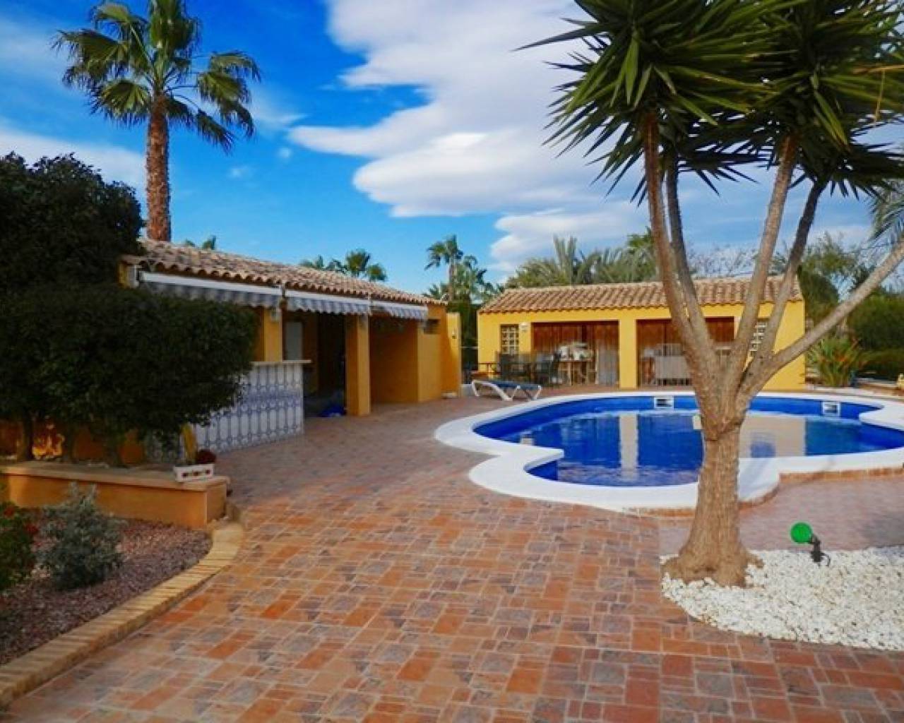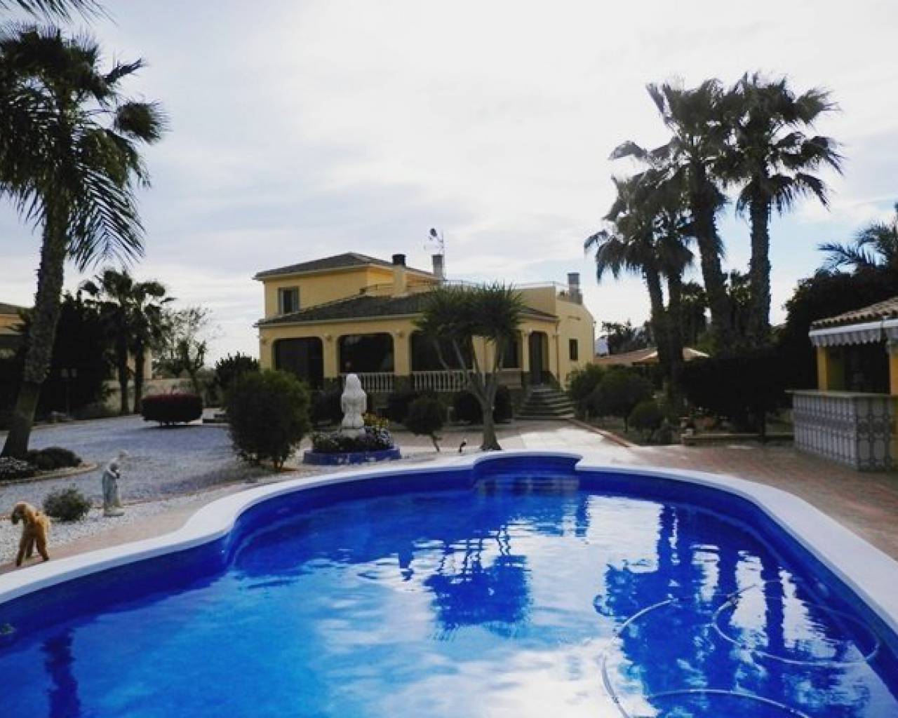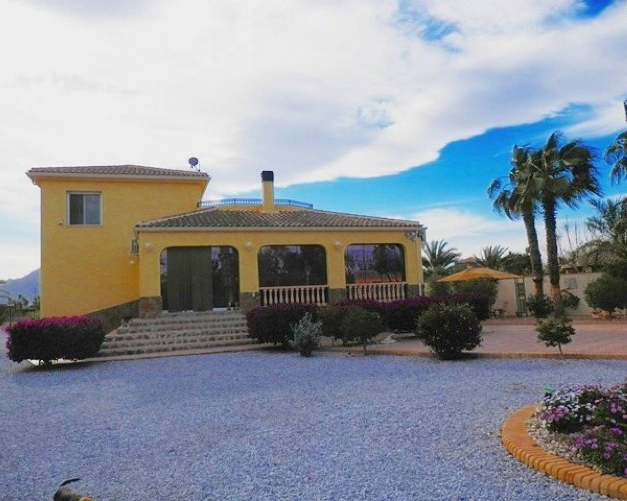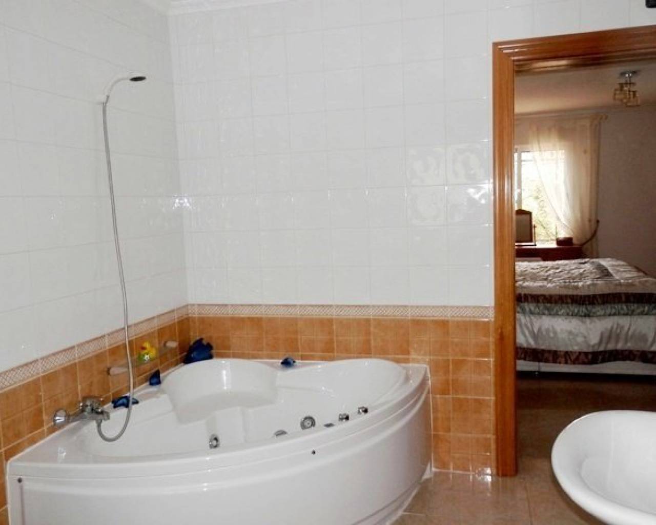 VOLLEDIG LEGAAL Luxe villa met een prachtig zwembad, buitenkeuken, bar, een open front casita, douche en wc plus 5 hondenkennels, een berging en poorten naar de boomgaard. Er is ook een aparte ingang naar de kelder met speelkamer, wijnkelder, berging en bijkeuken, 2 afzonderlijke volledig zelfstandige appartementen. Toegang tot het hoofdhuis is via een interne trap. Met fantastisch uitzicht vanaf het grote voorterras met glazen gordijnen een open haard en airco. Patio deuren leiden naar de woon / eetkamer met nog een open haard en centrale airco. Er is ook een keuken in Amerikaanse stijl. Op de begane grond zijn 3 slaapkamers waarvan één met een ensuite badkamer, een extra doucheruimte en een trap die leidt naar de master suite met een eigen douche en dakterras. COMPLEET MET CEDULA !!!