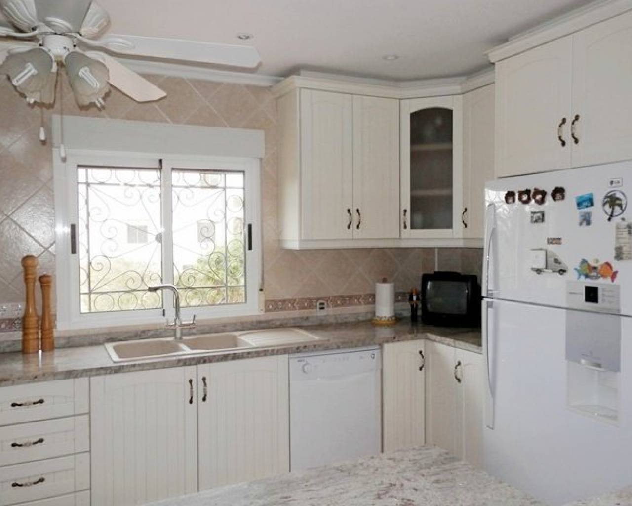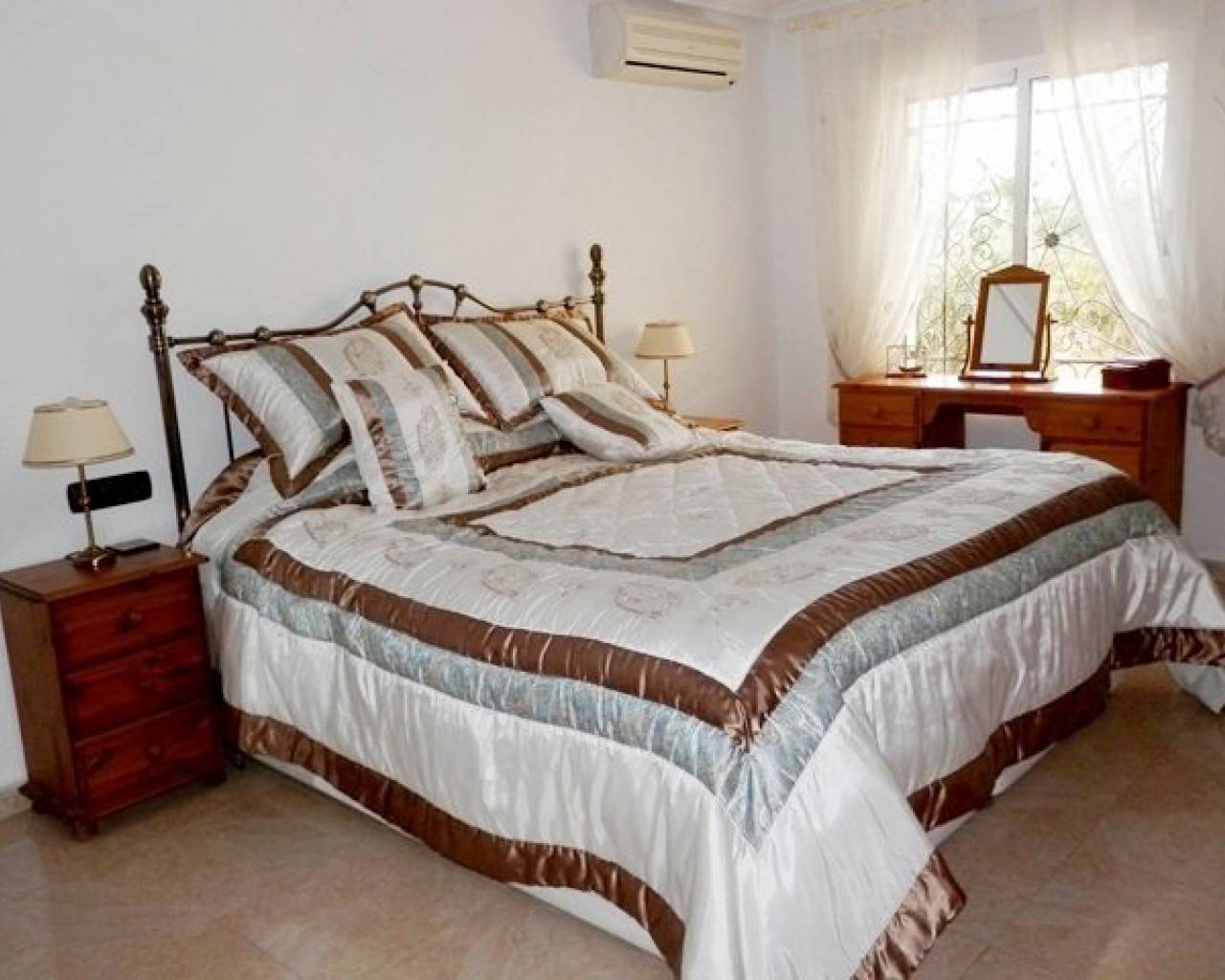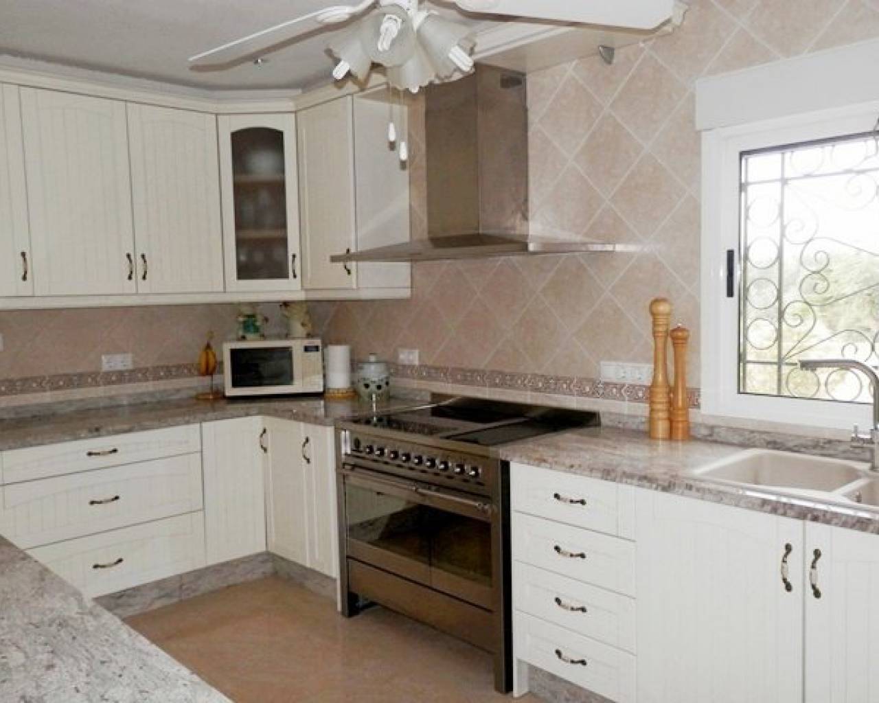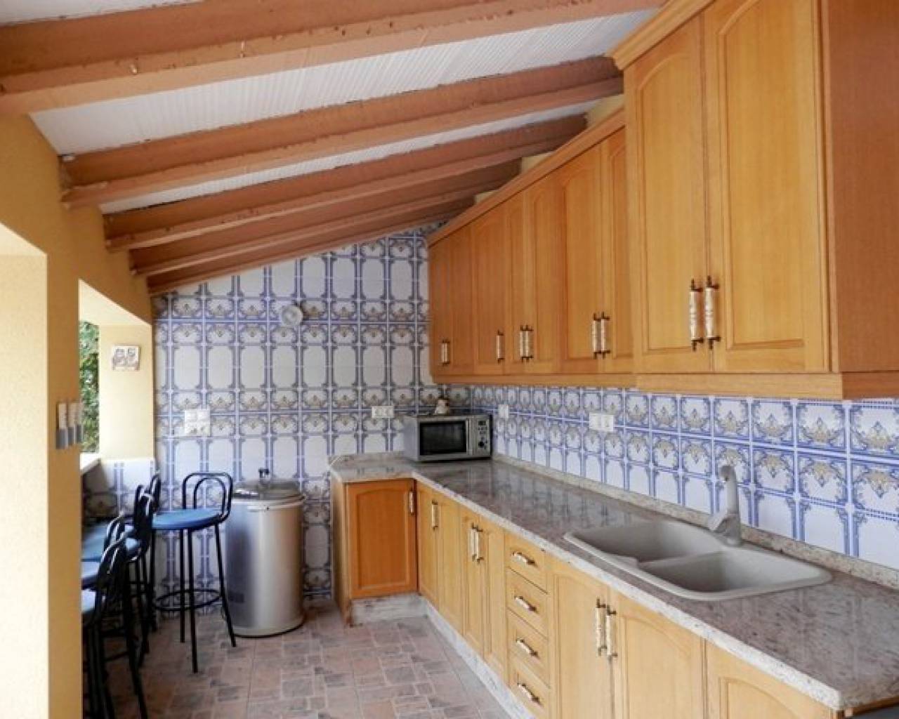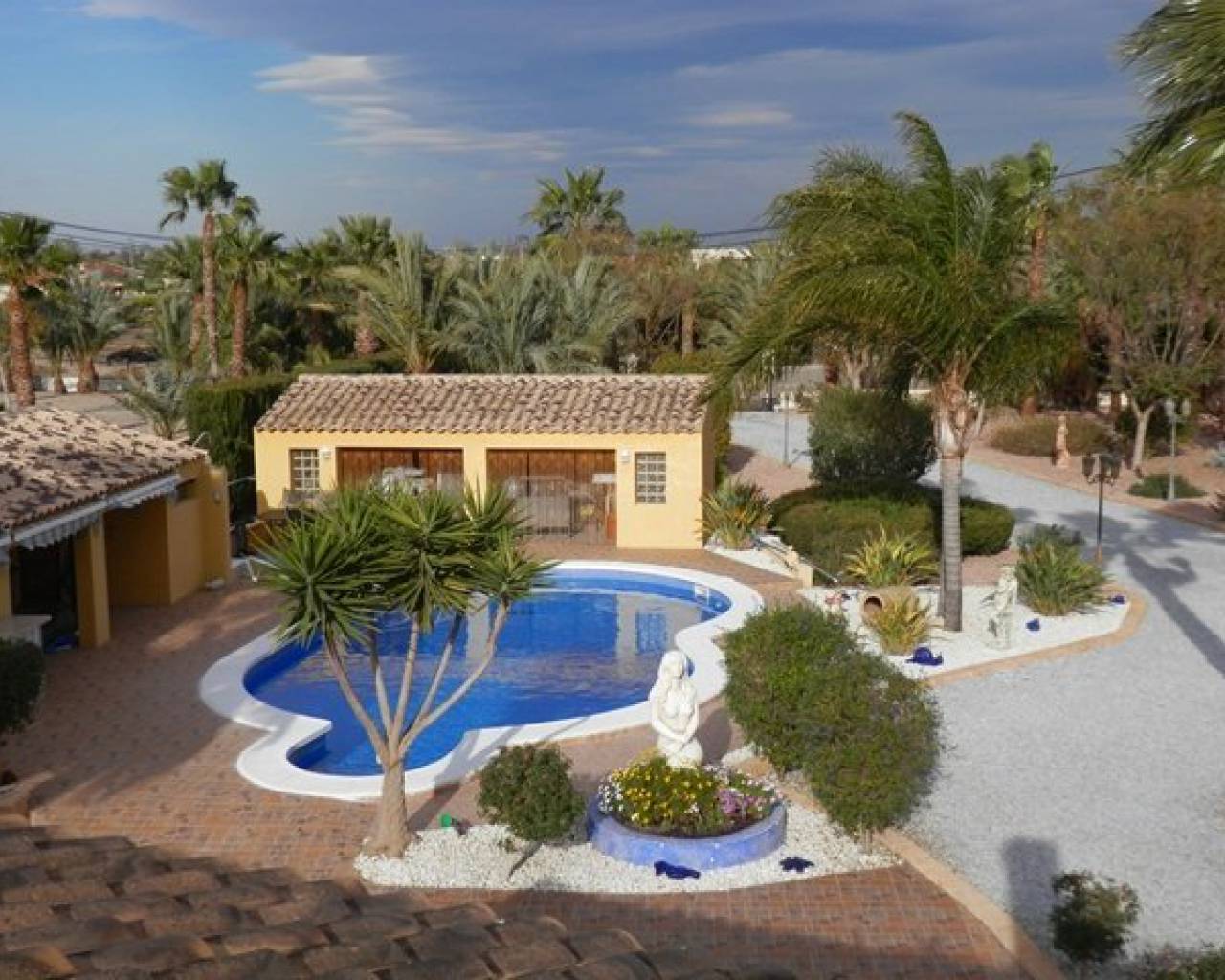VOLLEDIG LEGAAL Luxe villa met een prachtig zwembad, buitenkeuken, bar, een open front casita, douche en wc plus 5 hondenkennels, een berging en poorten naar de boomgaard. Er is ook een aparte ingang naar de kelder met speelkamer, wijnkelder, berging en bijkeuken, 2 afzonderlijke volledig zelfstandige appartementen. Toegang tot het hoofdhuis is via een interne trap. Met fantastisch uitzicht vanaf het grote voorterras met glazen gordijnen een open haard en airco. Patio deuren leiden naar de woon / eetkamer met nog een open haard en centrale airco. Er is ook een keuken in Amerikaanse stijl. Op de begane grond zijn 3 slaapkamers waarvan één met een ensuite badkamer, een extra doucheruimte en een trap die leidt naar de master suite met een eigen douche en dakterras. COMPLEET MET CEDULA !!!