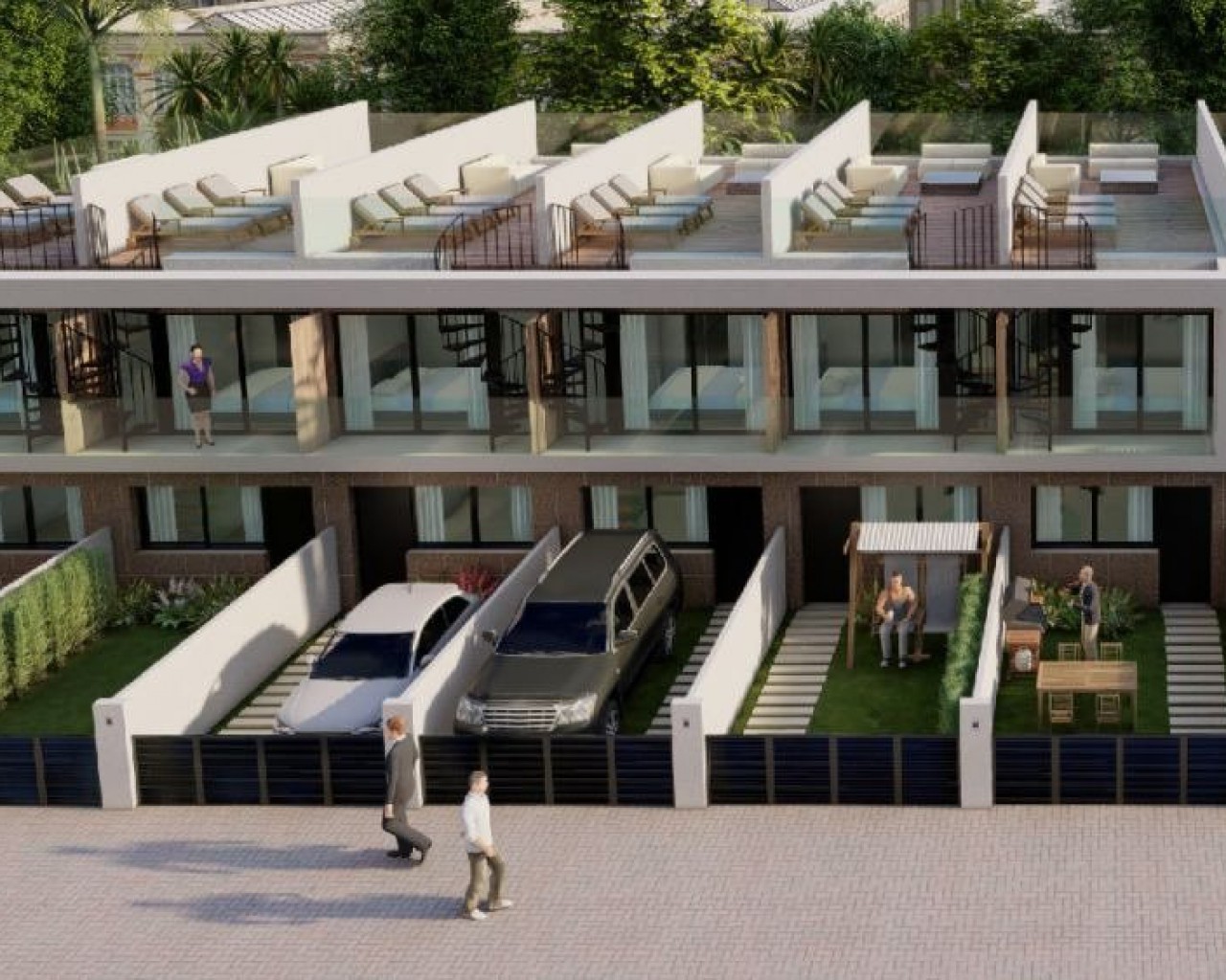 Fantastische geschakelde woningen met 2 en 3 slaapkamers, aanpasbaar - VANAF 189.000 EURO -. De slaapkamers, woonkamer, keuken en badkamers en een solarium op het dak zijn verdeeld over twee verdiepingen. Het huis kan worden verdeeld met 2 of 3 slaapkamers, met een semi-onafhankelijke of Amerikaanse keuken, 3 badkamers en een eigen solarium in elk huis. De woningen hebben pre-installatie van airconditioning, mooie keukenmeubels en een luchtverwarmer voor warm water. Zielo biedt de mogelijkheid om de kamers van het huis in te delen naar de voorkeuren van elke klant, er zijn verschillende ontwerpmogelijkheden. - Optie Begane grond A met een slaapkamer, keuken geïntegreerd in de woonkamer en een badkamer + Boven met 2 slaapkamers en suite, elk met een binnenbadkamer + solarium. - Optie Begane grond B met semi-open keuken, woonkamer en een badkamer + Boven met 2 slaapkamers en suite, elk met binnenbadkamer + solarium. De interieurafwerking van het huis zal bestaan uit porseleinen materialen in warme tinten van Porcelanosa, inclusief hoge keukenkasten en apparaten. WAT ZIJN DE KWALITEITEN EN AFWERKINGEN VAN ZIELO - Porseleinen vloer van topkwaliteit. - Hoogbeveiligde gepantserde hoofddeur met 5 ankerpunten. - Witte schuiframen met thermische onderbreking en Climalit-jaloezieën door het hele huis behalve badkamers. - Inclusief postgevormd DM keukenmeubel, compact kwarts aanrechtblad en elektrische apparaten. - Pre-installatie van airconditioning leidingen door het hele huis. - Luchtverwarmer inbegrepen (hernieuwbaar energiesysteem). - Parkeerplaats op het oppervlak. Gran Alacant is een levendige en moderne wijk met alle diensten en faciliteiten voor alle leeftijdsgroepen: scholen, sportcentrum, supermarkten, winkelcentrum, politie, restaurants, bibliotheek, parken, gezondheidscentrum, etc. direct voor de deur. Het strand van Carabassi is een van de beste in Spanje, ondersteund door natuurlijke duinen van bleek zand en een kristalheldere zee. Snorkelen, paddle SUP en vele andere watersporten zijn lokaal beschikbaar. Dit alles, naast een benijdenswaardige gunstige ligging, op slechts 10 minuten met de auto of taxi van de luchthaven, 15 km van het centrum van Alicante, 18 km van Elche en minder dan 10 km van Santa Pola, maken Gran Alacant echt een ideaal gebied zowel om het hele jaar door te leven als voor een reis. fantastisch vakantiehuis. Santa Pola, op een klein eindje rijden of met de bus, staat bekend als een traditionele vissershaven en heeft een van de grootste vissersvloten aan de Spaanse Middellandse Zeekust. De belangrijkste industrie is de visserij, maar ook de productie van zout en de bouw van pleziervaartuigen. Vol met restaurants, de prachtige wandelingen zijn een ideale plek om te bezoeken om te genieten van gerechten uit Alicante met een prachtig uitzicht op de zee.