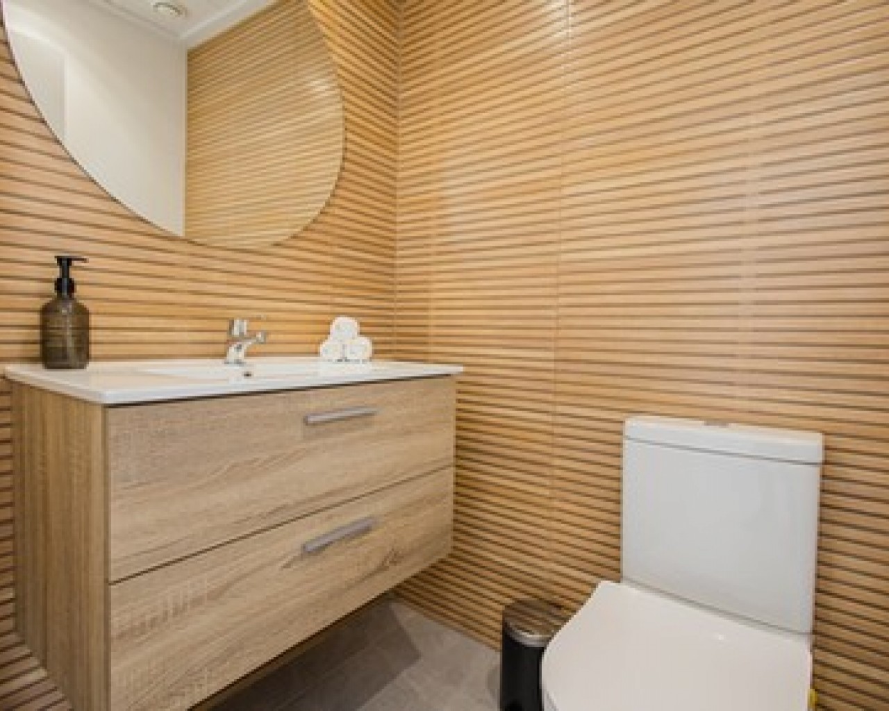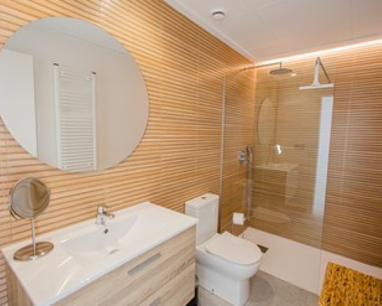 The kitchen, the heart of every home, is designed in timeless white and wood, perfect for cozy evenings with friends or family. And then the bathrooms: luxurious and practical, with modern finishes to add a touch of extra luxury to your everyday routine.