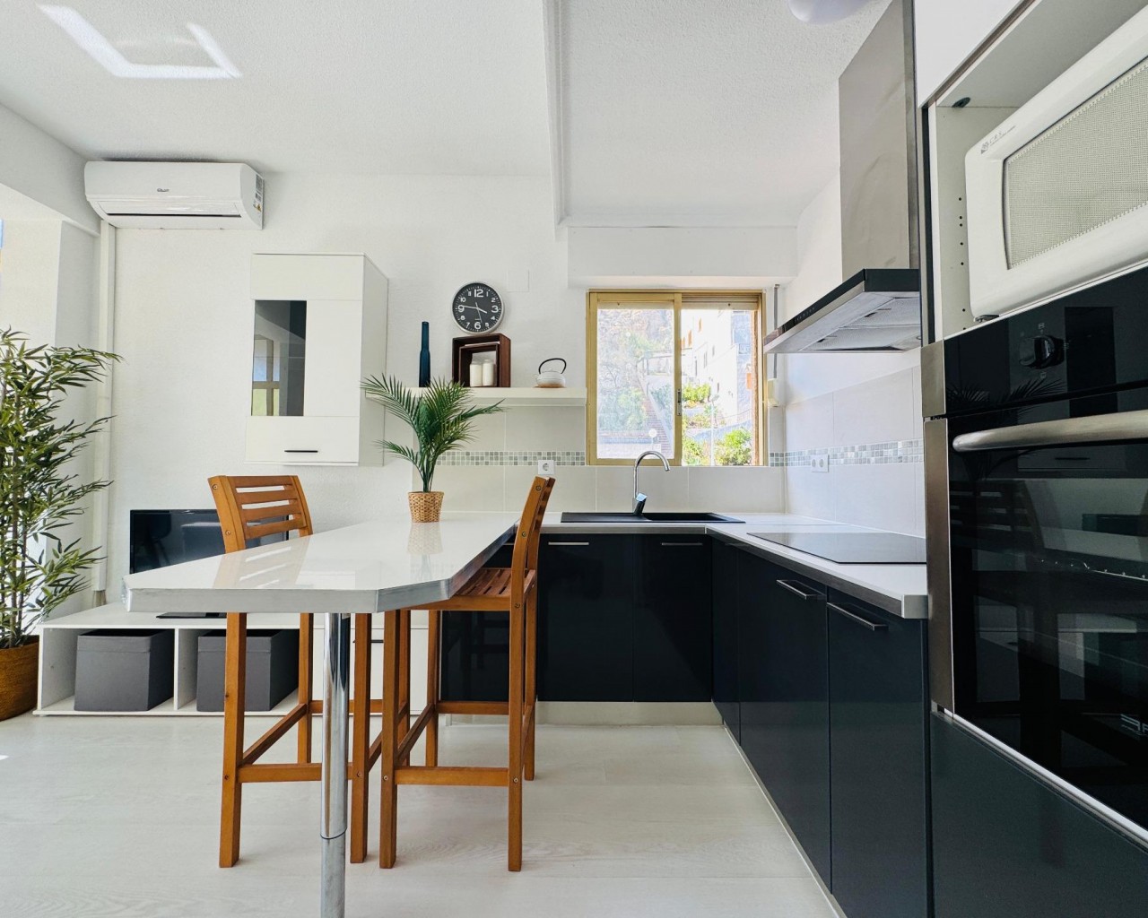 . 616 / 5.000. We're showing you a beautiful apartment in the Calas de Santa Pola area, completely renovated, perfect for year-round living or for vacations.. The bright apartment with large windows makes it very cozy and attractive.. It consists of a living-dining room with a glassed-in terrace and a large open-plan kitchen. Two bedrooms and a bathroom.. The complex has a parking area and a communal terrace with wonderful views.. It's a 2-minute walk to the beach.. Don't miss it! Call us and we'll show you the apartment without obligation.. . Notary fees and taxes are not included in the price.