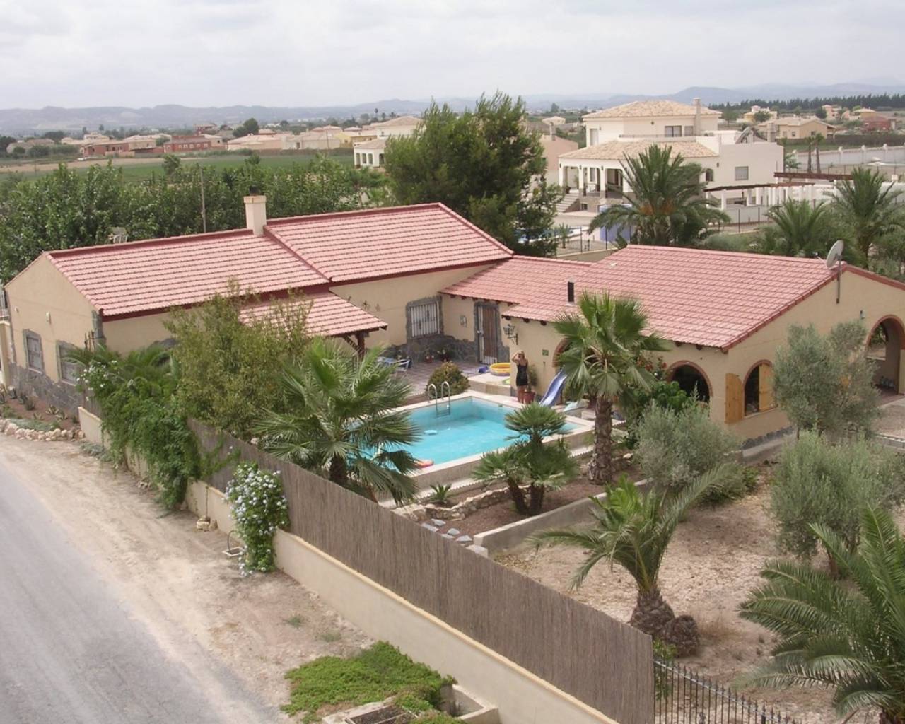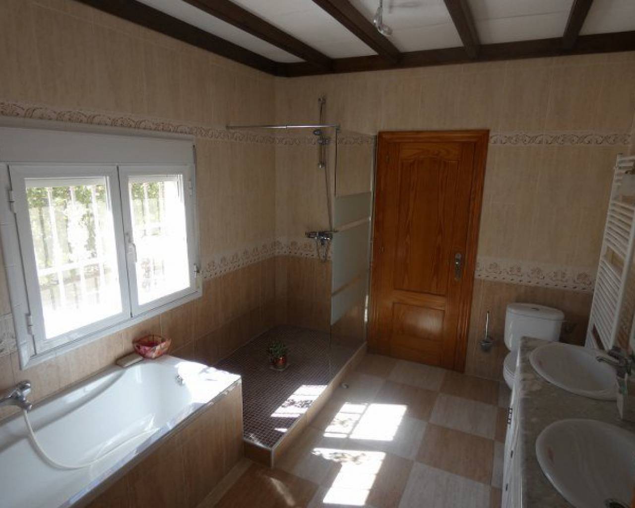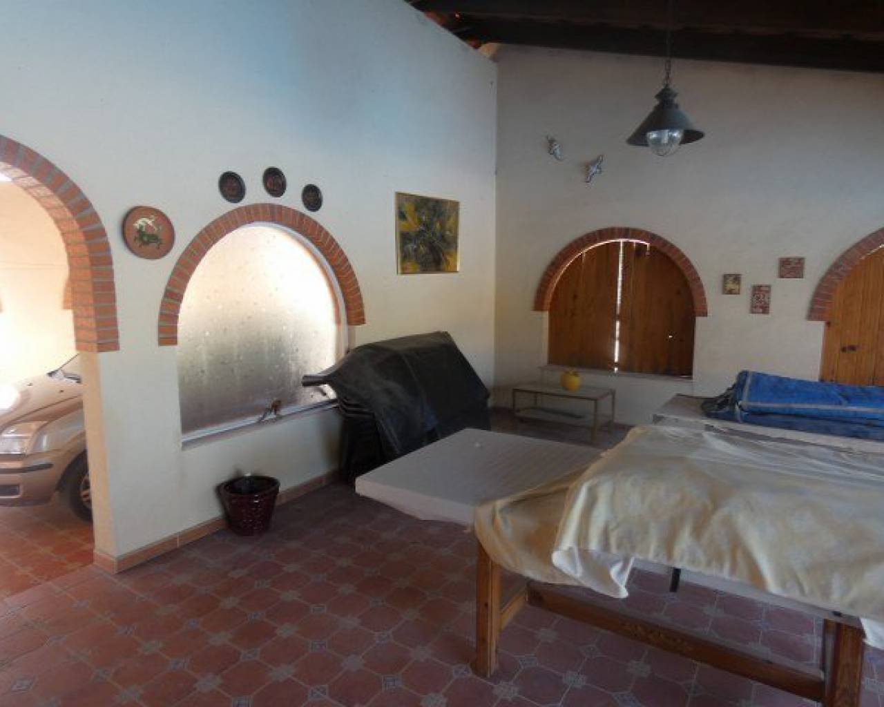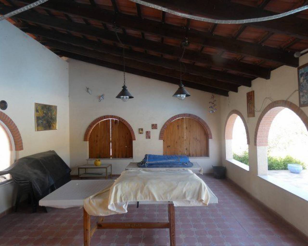 A lovely rustic style finca with lots of charm but with modern facilities and set on a large 7000m2 plot with private pool. A tiled terrace, partly covered for shade, surrounds the pool with the garden beyond which has many established trees and plants. There is a very spacious fully fitted kitchen with ample cupboard space and work surface. The lounge features a log burning fireplace and beamed ceilings making a very cosy feel to this room. The family bathroom is very spacious with a bath tub and walk-in shower plus twin sinks. There is a further shower room and 3 double bedrooms. The property also boasts a large covered and arched terrace, perfect for alfresco dining and entertaining with a summer kitchen and a wooden roof plus space for shaded parking. Outside there are solar panels, lots of off road parking space and storage. The house is surrounded by lovely countryside but with the village of Catral close by which has all the amenities you would need