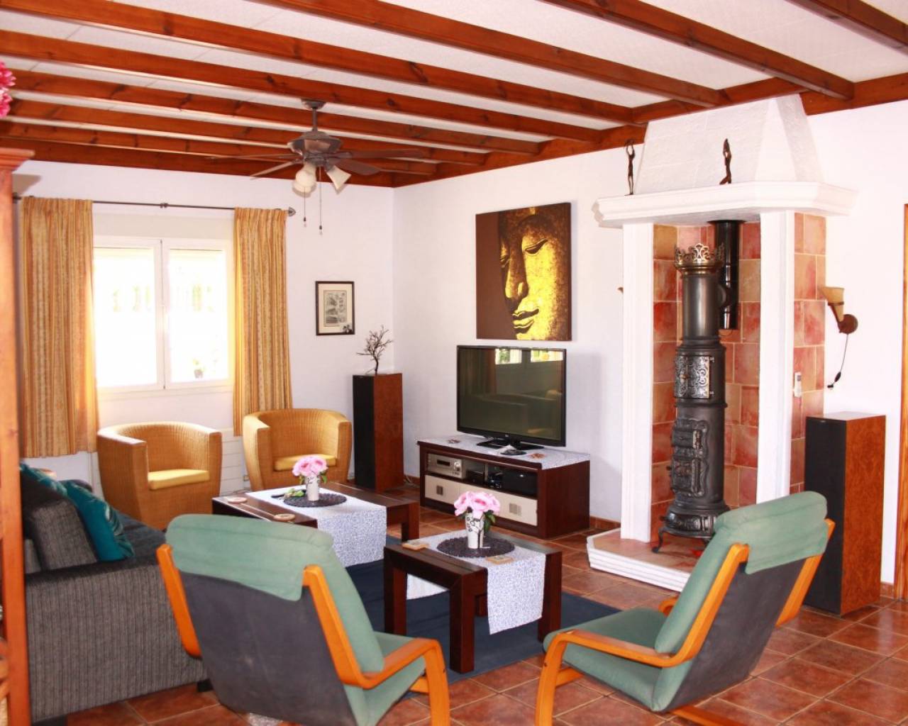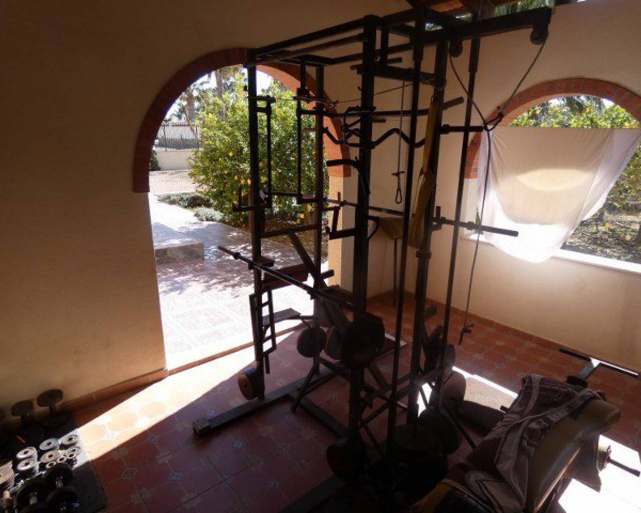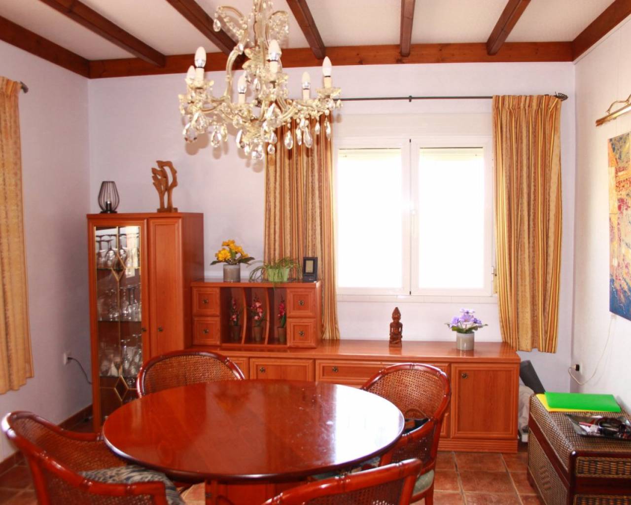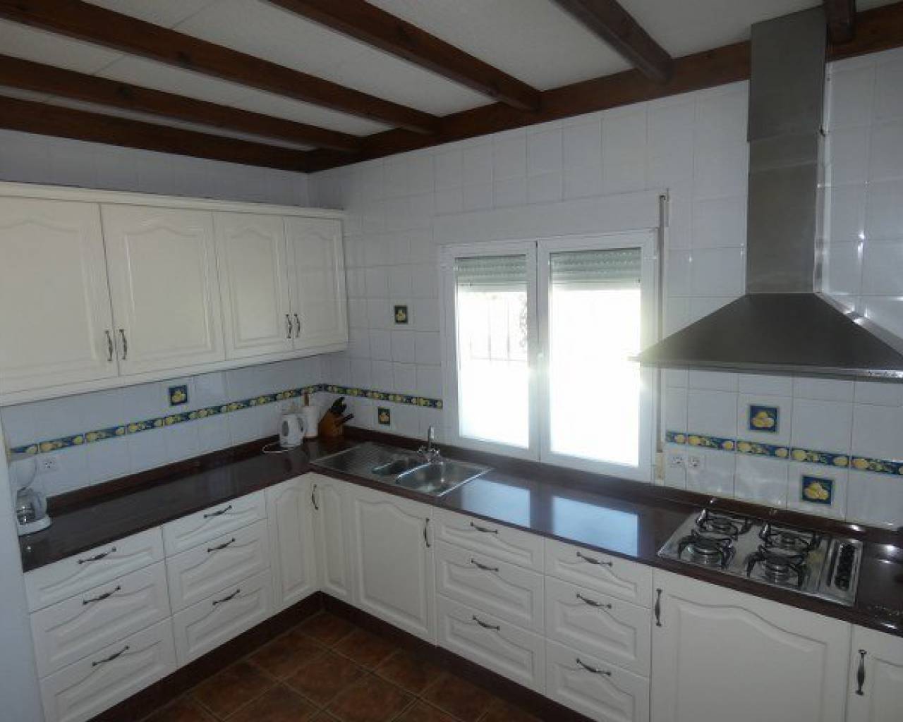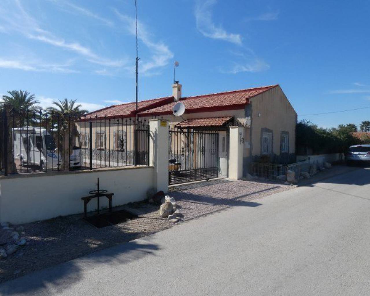 A lovely rustic style finca with lots of charm but with modern facilities and set on a large 7000m2 plot with private pool. A tiled terrace, partly covered for shade, surrounds the pool with the garden beyond which has many established trees and plants. There is a very spacious fully fitted kitchen with ample cupboard space and work surface. The lounge features a log burning fireplace and beamed ceilings making a very cosy feel to this room. The family bathroom is very spacious with a bath tub and walk-in shower plus twin sinks. There is a further shower room and 3 double bedrooms. The property also boasts a large covered and arched terrace, perfect for alfresco dining and entertaining with a summer kitchen and a wooden roof plus space for shaded parking. Outside there are solar panels, lots of off road parking space and storage. The house is surrounded by lovely countryside but with the village of Catral close by which has all the amenities you would need