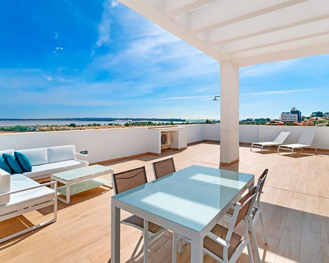 In addition, the bungalows on the ground floor have a large front terrace of 35 m2 and a rear terrace of 38 m2 for outdoor living, with a finish to pavement or grass. The bungalows on the top floor have a large terrace and solarium with beautiful views over the surrounding area.